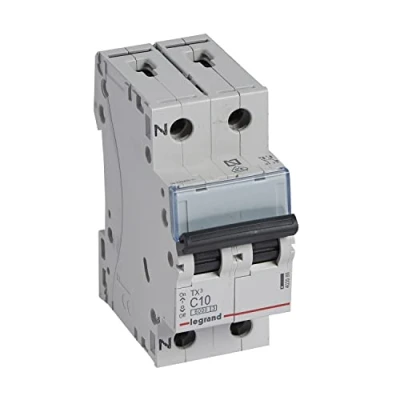 Legrand 403585, Automatic Magneto Thermal Switch, P+N, 10A, C Curve, 6 kA, 2 Module, TX3