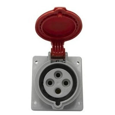 P17 Fixed Socket with Standard Pitch, Plastic, IP44, IK09, 3P+T, 32A, 380V~ to 415V~ – can be mounted on a surface-mounted plate, flush-mounted box, or construction site enclosure