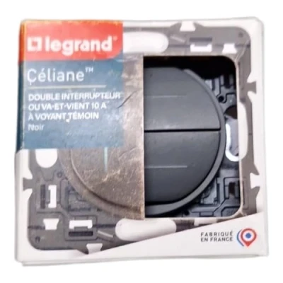MODERN DESIGN: Céliane double wall switch black, light and elegant, fits any decor Practical indicator: The indicator light indicates whether the outdoor lighting is on Easy installation: quick connection without tools, automatic terminals for easy assembly CÉLIANE QUALITY: The Céliane range rhymes with quality, aesthetics and innovation. The careful workmanship and robustness of the components of Céliane products ensure reliable and long-lasting use. LEGRAND, 150 YEARS OF INNOVATION: Simplifying life, ensuring comfort and safety, promoting energy efficiency... while preserving the environment and contributing to digital transformation. These are the pillars of our commitment., Manufacturer: Legrand