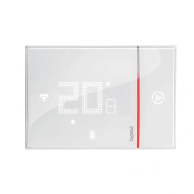 The Smarther With Netatmo Smart Thermostat allows you to control and program your heating locally but also remotely, from a smartphone via an app. Functions: - Control and program your heating via the touch interface, via your smartphone or using a voice assistant - Boost mode: heat your home even faster - Auto-Adapt function integrates the weather and thermal characteristics of the house to ensure the desired temperature - Schedule function: allows you to adapt the temperature according to your needs and save money. - Programming of the Away and Freeze modes in case of prolonged departure - Possibility to view the consumption history and consult the Energy Savings Balance sheet to monitor and optimize its energy consumption Connected thermostat: It can be controlled from its touch interface but also remotely from your smartphone with the Legrand Home + Control app or via a voice assistant. This model is designed for flush mounting in 2 module box. Compatibility: the Legrand Smarther with Netatmo connected thermostat is suitable for all types of individual boilers (wood, oil, gas) and heat pumps, compatible with more than 1500 boilers LEGRAND ECOSYSTEM: Bring your entire Legrand With Netatmo ecosystem together in the Legrand Home + Control app