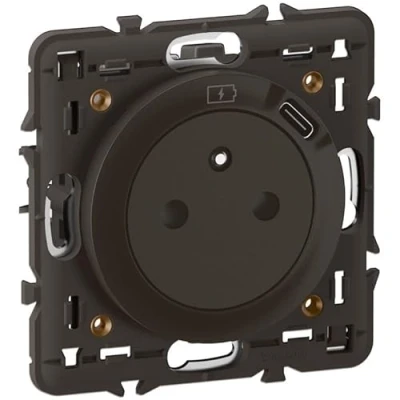 Legrand CZ0140 2P+T socket with 7.5W USB Type C socket, Céliane black cover plate and bracket