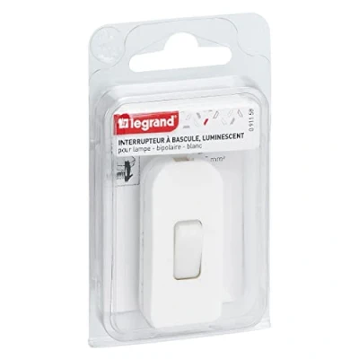 Product: Two-pole toggle switch for lamps with afterglow button, ideal as a replacement switch Areas of application: ideal for controlling bedside lamps, desk lamps or floor lamps SUITABLE FOR: Class II lighting fixtures Colour: white Technical data: 2 A, 250 V, 2-pole, flexible wire, screw installation of a cable 2 x 0.75 mm², Weight: 0.0661386786 pounds, Manufacturer: Legrand