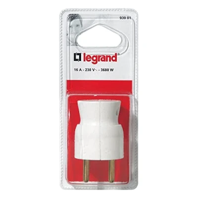 Plastic cards with Earth One-Piece Connectors For round cable ø11 mm maxi Ref 938 (except 03 Small Appliance Class i (single insulated), e. G. Coffee, Iron, ... for realisation of Extensions Cable outlet at the bottom Male Plug, Manufacturer: Legrand
