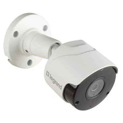 External CCTV Day and Night colour camera to extend the video door intercom sets (369110, 369220, 369230, 369320, 369330, 369420, 369430), which can be connected directly to the outside. Infrared lighting with a total of 30 LEDs for face detection in the dark (high light sensitivity and IR cut filter) with 80° viewing angle. Weatherproof thanks to protection class: IP66. Box contents: Security camera, infrared lighting for day/night lighting (15 m), power supply, connector, power cable (18 m), video cable (30 m). Extension: Outdoor camera requires the previous installation of a Legrand intercom kit.