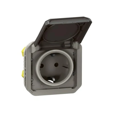 LEGRAND, Plexo 069571L Wet Room Socket, Schuko Standard, with Hinged Lid, Touch Protection, Plug In Terminals, 16A, 250 Volt, IP44 IK08 (IP55 Lid Closed), Anthracite, Anthracite
