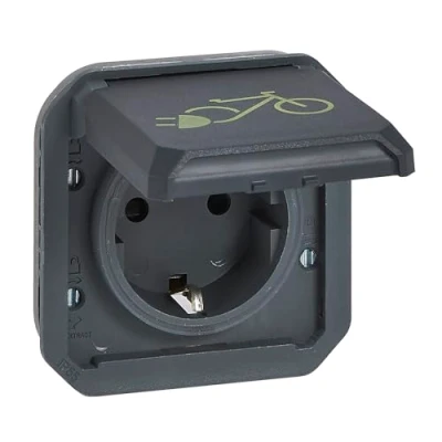 LEGRAND, Plexo 069886L Insert, Protective Contact Socket for Charging Electric Bikes, 16 A 250 V, Plug In Terminals, Increased Touch Protection, Bicycle Symbol, IP 44 IK 08, Colour: Anthracite,