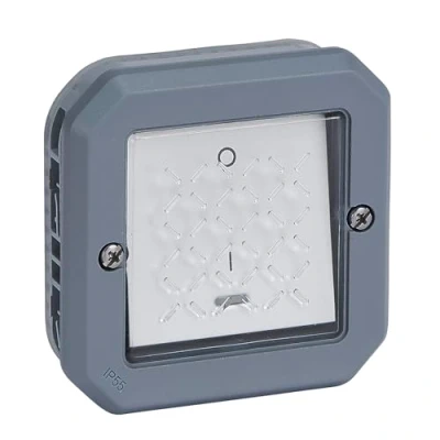 LEGRAND, Plexo New 069728L Wet Room 2 Pin Surface Mounted Off Switch with Control Function, Integrated Indicator Light, IP55 IK07, 16 Amps, 250 Volts, Colour: Grey