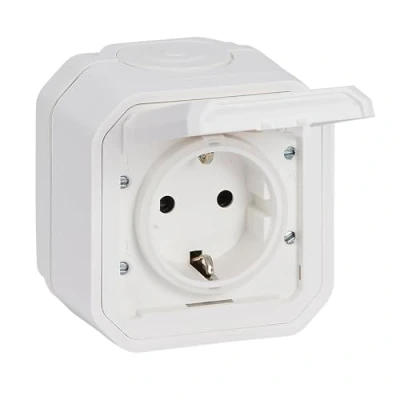 LEGRAND, Plexo New 069770L Surface Mounted Socket Schuko Standard Including Hinged Lid Touch Protection Plug In Terminals 16 Amp 250 Volt IP44 IK07 White
