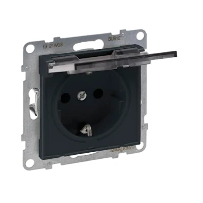 LEGRAND, Seano 765423 Protective Contact Socket with Increased Touch Protection and Hinged Lid IP21, Plug In Terminals, 16 A, 250 V, Colour: Anthracite Lacquered