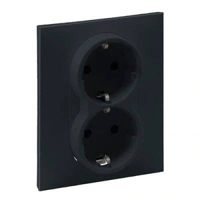 LEGRAND, Seano 765425 Double Protective Contact Socket with Increased Protection, Plug In Terminals, 16 A, 250 V, Colour: Anthracite Lacquered
