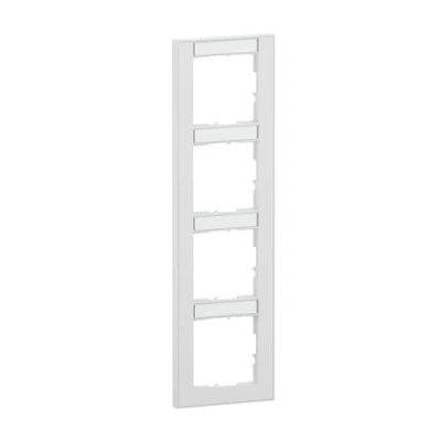 LEGRAND, Seano+ 765994 4 Way Vertical Frame with Labelling Field, Halogen Free Thermoplastic, Sustainable Production and Packaging, Colour: Ultra White