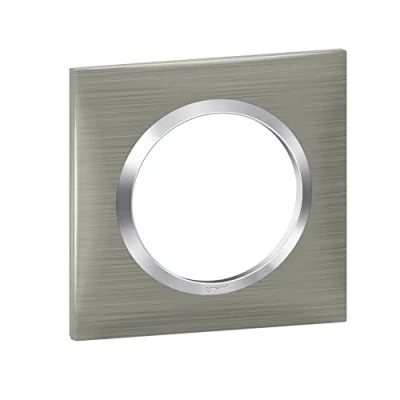 Legrand Square dooxie 1 Hole Plate with Brushed Stainless Steel Effect Finish Chrome Ring