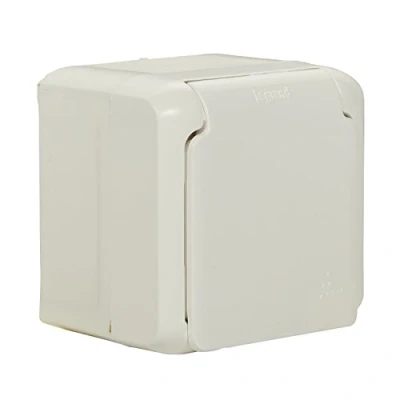 Legrand, Wet Room Surface Mounted Socket IP44 (1 Way), 2 Pin with Earthing Contact, Child Protection and Lid, for Mounting on the Wall, 782373