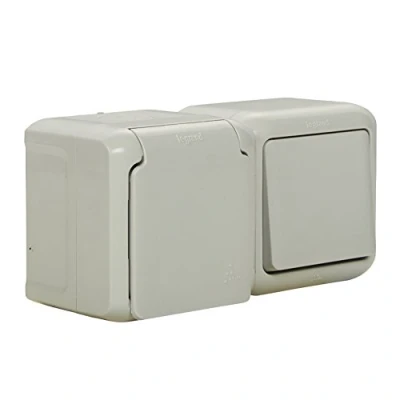 Legrand, Wet Room Surface Mounted Socket Switch Combination (Horizontal) IP44, with Protective Contact and Lid, for Wall Mounting, 782391