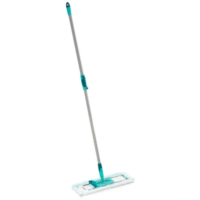 General description The Leifheit Profi XL Micro duo Floor Cleaner with telescopic handle is designed for efficient cleaning of large surfaces while minimizing back strain. Its adjustable telescopic handle allows for optimum working comfort, making it suitable for users of various heights. Technical specifications Cleaning width: 42 cm Telescopic handle length: adjustable from 80 to 135 cm Dimensions: 150 x 42 cm Colour: Green Usage Deep cleaning of parquet, tiled, and stone floors Easy removal of the cover with a simple press of the foot 360° swivel joint for flexible zigzag wiping Fold-flat head for accessing hard-to-reach areas Integral cover cleans skirting boards and corners simultaneously Other information Click system handle compatible with many Leifheit products Leifheit Profi XL cover wringer sold separately for hands-free wringing