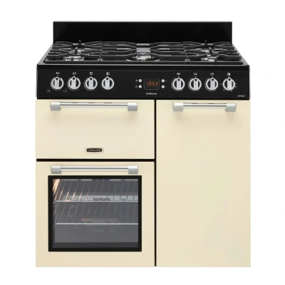 With this cream Leisure Cookmaster CK90G232C Gas Range Cooker you'll get a beautiful appliance with two ovens, a large gas hob and a separate grill to help you handle any recipe.Use more pots and pansFive gas burners provide plenty of room to use your pots and pans, with cast iron pan supports to keep your cookware level and stand up to the heat of everyday cooking.The Cookmaster 90 also offers a wok burner to accept larger cooking vessels and gives you the facility to whip up sizzling Asian-style meals.More room for roasting and bakingYou'll have two ovens at your disposal on the Leisure Cookmaster CK90G232C.The main cavity uses gas and offers 51 litres of room and uses conventional heating to give you more versatility. Switch ingredients between levels so they receive different heat intensities, keeping you in control.A tall 66 litre electric second oven gives you even more space and offers fanned heat for consistent temperature distribution throughout the cavity. Cook more of the same thing on each level. It's great for batch baking, making pizzas and much more.Use the programmable timer to set the main oven to perform how you need it to and keep track of cooking times.Dedicated grillYour Leisure Cookmaster 90 Range Cooker includes a separate gas grill compartment complete with grill pan and handle, great for everything from lamb chops and burgers to asparagus and peppers.Add colour and texture as a finishing touch to savoury and sweet dishes alike, transforming pies and cheese on toast into mouth-watering treats you can't wait to plate up.Scrub lessWith catalytic liners in the main oven, your Leisure Cookmaster 90 Range Cooker oxidises greases and fats while you're cooking, helping to break them down and making your oven easier to keep clean.The second oven keeps things simple with its easy-clean enamel surfaces, which also allow for quick wipe-downs instead of full-scale scrubbing. You can even take out the double-glazed door glass for more thorough cleaning.Safer cookingThe Cookmaster 90 features a flame failure safety device on each burner that immediately cuts off the gas supply should a flame be extinguished on the hob. The oven features a cooling fan to help reduce temperatures quickly after cooking.Choose the Leisure Cookmaster 90 Gas Range Cooker in cream for beautiful cooking no matter what you're making._______________________________________________GAS INSTALLATION: This product requires installation by a qualified gas safe engineer, such as one of our Tech Experts (available in the UK only).ELECTRICAL INSTALLATION: This product requires professional installation to a 13 Amp fused spur by a qualified installer, such as one of our Tech Experts.