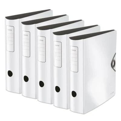 Box contents: 1 x Leitz quality folder, 180° active solid, A4, wide, 2-hole punching, white, dimensions (W x H x D): 82 x 318 x 312 mm, 10471001 Easy labelling of the self-adhesive label, individual design of the labels thanks to Leitz EasyPrint on the Leitz homepage, elastic band closure for safe transport of your documents Lightweight polyfoam (2.8 mm), round spine with finger hole for easier carrying, made of robust, lightweight, water and dirt-repellent plastic, protects the furniture thanks to the non-scratch surface