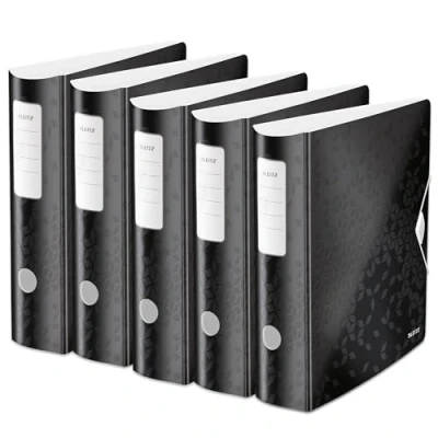 Leitz 11060095 180 Active Wow Quality Folder, Pack of 5, A4, Wide, Rounded Spine, 8.2 cm Elastic Closure, Lightweight Polyfoam, Plastic Series, Black