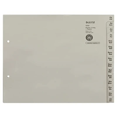 Leitz 13120085 Index Series A Z A4 Paper for 12 Folders Grey