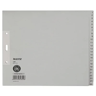 A4 number dividers 1-25 in grey For use with punched documents in lever arch files, ring binders and more Contents tab included The first sheet has strengthened holes to ensure durability in your binders One set of dividers included plus an adhesive contents tab