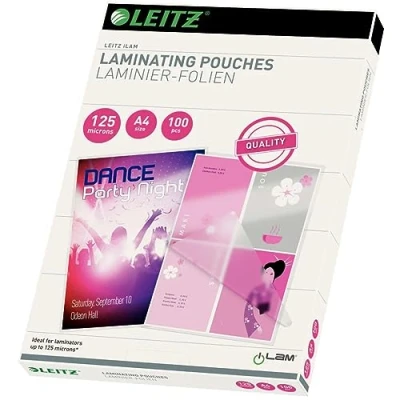 Leitz 33808 Laminating Pouches Made of 125 Micron Thick Material (Transparent, Glossy, A4) Pack 100