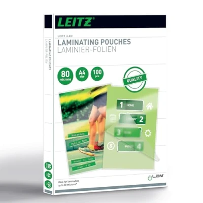 Leitz 33818 Laminating Pouches Made of 80 Micron Thick Material (Transparent, Glossy, A4) Pack 100
