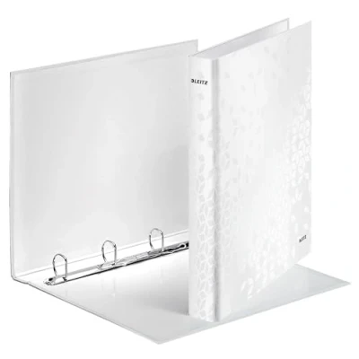 Ring Binder Leitz WOW, white, display stand - Ideal for travel and everyday life or in the office, A4, Diameter 25 mm rings, Capacity: 190 sheets (80g/m² Create and print your own tags with easyprint on the home page of the Leitz website Easy consolidation of documents thanks to the 4 D-Ring (25 mm, ideal for the dividers and pouches Cardboard, laminated cover with gloss appearance Content: 1 x 25 mm 4-ring binder Leitz WOW, white, 42420001, Size (L x H x D: 275 x 318 x 40 mm, 390g, A4, for 4 hole punch
