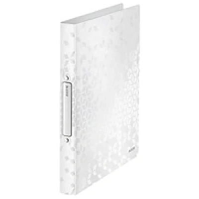 4 ring binder, white, 25 mm wide spine, holds up to 190 A4 (80 gsm sheets, ideal for the transportation and organisation of documents, meetings and school Quick and easy identification of content thanks to spine label Mix and match with other products from the LEITZ wow range Embossed and patterned finish, wipe clean flexible plastic surface, durable and tear resistant, 25 mm ring diameter, four round ring mechanism for secure transportation of documents Contents: Ring binder, white, 42580001, dimensions W x H x D: 32 x 314 x 257 mm, 140 g, A4