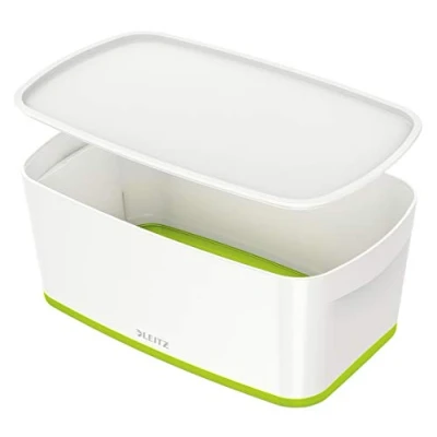 Leitz 52291054 A5 MyBox Small with Lid, Storage Box for Home and Office, 5 L, High Gloss, Plastic, White/Green