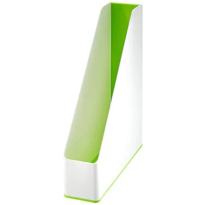 Elegant magazine and catalogue file with a glossy finish, contemporary design, for organizing A4 and US size documents, easy to handle ergonomic shape, for home and office use Top opening for quick access to contents, labelling made easy with the Leitz Icon label printer Brighten up your desk with this and other products from the Leitz WOW range High quality, made with robust plastic for a elegant look that lasts, smooth, easy to clean surface Contents: 1 x Leitz magazine file, white/green, WOW, dimensions: (W x H x D) 7.5 x 31.2 x 25.8 cm, 53621054
