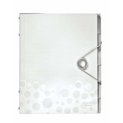 Leitz A4 Divider Book, Holds Up to 200 Sheets, Integrated Index with 6 Compartments, Elastic Closure, White, Bebop Range, 45690001