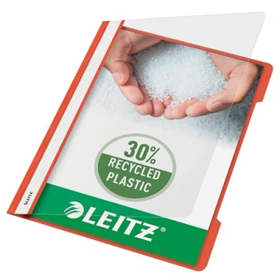 Made from 30 percent pre-consumer PP plastic, 100 percent recyclable (metal mechanism to be separated from the plastic), high quality materials ensure a long lasting product, helping to preserve the earth’s resources The glass-clear cover shows first page of document, full length title strip to easily identify content, thumb cut top and bottom for easy removal Cutout on the back cover allows for easy opening, with a 60 A4 sheet capacity (80 gsm), this flat file is ideal for filing and protecting documents on the move This product features a label only – there is no further packaging to reduce waste Contents: 1 x Leitz Standard Plastic File, Light Red, 41910020, Dimensions (W x H x D): 310 x 233 x 1 mm, A17
