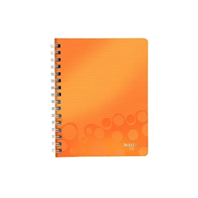 Flexible but strong ruled notebook for writing, practical A5 size, for daily use, on the move, at home or at work, fits into the Leitz Wow box and project file, magazine files and letter trays With 160 pages (80 sheets), integrated pocket for storage of loose documents, strong wire binding allows easy page turning to 360 degrees and extends the life of the notebook Brighten up your desk with this and other products from the Leitz Wow range, ruler that can also be used as bookmark High quality paper (80 gsm) FSC certified, micro perforated white paper with satin finish, cut out for extra easy tearing Contents: 1 Leitz Wow notebook, A5, 80 sheets, ruled, dimensions (W x D x H): 181 x 20 x 215 mm, orange, weight 0.29 kg, 46390044