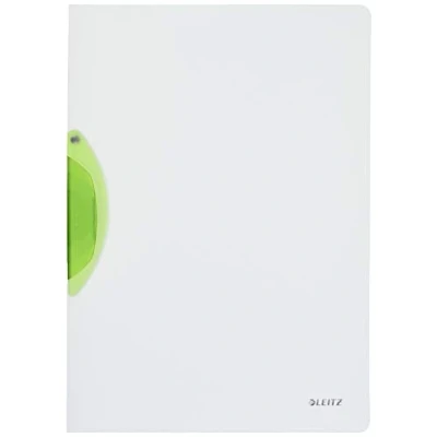 Frosted white files with an attractive dash of colour in the binding clip Made from durable polyprolylene with a plastic binding clip designed for easy opening and closing When opened, the contents lie flat for easy reading Ideal for filing A4 non-punched sheets Capacity: up to 30 sheets, Green