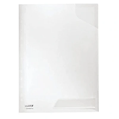 Combination of transparent and protective cover, ideal for transporting in laptop bags, flexible use as a brochure or transparent sleeve thanks to unique, foldable perforated edge with universal 11-hole punching Labelling strips for labelling the contents, tear-resistant, durable and reusable Practical closure flap at the top right for secure hold of the documents Very durable plastic material with elegant surface and stylish embossing Box contents: 1 x 5 Leitz CombiFile pockets, A4 format, crystal clear with glossy surface, closure flap on the top right, 0.18 mm PP film, 47300002