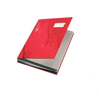 Red signature book with 18 rigid card dividers for organising and safely storing important documents like contracts and bills for home or office use Sturdy hard cover with smooth coating protects documents from damage, 18 dividers with grip surface keep papers in place, replaceable label on cover for quick and easy identification of content Easy to turn pages without tearing thanks to tabs on bottom of dividers, waterproof cover, recycled card material protects signatures from smearing High quality durable dividers, 90 percent of product is made from 100 percent recycled material Contents: One Leitz Signature Book with 18 Card Dividers, A4, dimensions (W x H x D): 24 x 2.8 x 34 cm, material(s): Hardboard cover, colour: Red, 57450025