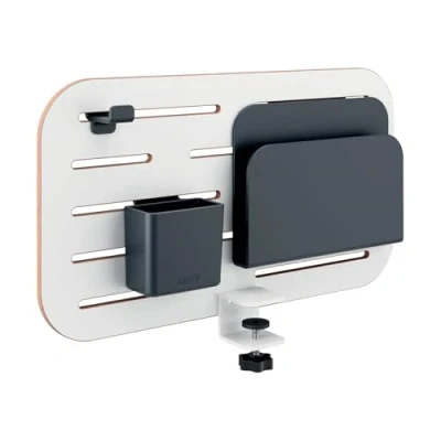 Leitz Ergo Small Pegboard Desk Organiser with Tidy Accessories, Compatible Thickness of 35mm, Wide Hanging Slots, Clamp Mounting, 42cm x 25cm, Range, White, 65480000
