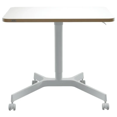 Leitz Ergo Small Sit Stand Desk with Pneumatic Height Adjustment, Ergonomic Standing Desk, Holds Up to 20kg, Movable Castor Wheels, 80cm x 60cm, Range, White, 65360001