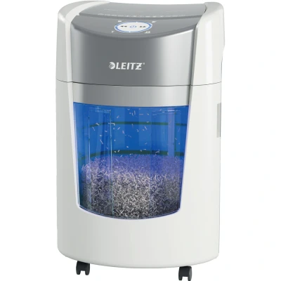 AmazonUNIQUE BIN ROTATION TECHNOLOGY: Ensures even paper distribution and +33% more capacity* (+90 x A4) compared to no BRT. *Leitz IQ OptiMax tested with and without bin rotation technology HIGH SECURITY MICRO CUT: Shreds up to 8 x A4 sheets (80gsm) in just 8 seconds into P5 micro-cut pieces, effortlessly shreds staples and paper clips. Automatically stops and reverses paper when too much is inserted GENEROUS 22L BIN CAPACITY: Holds up to 350 x A4 sheets for less frequent emptying and is easy to remove. Intuitive dynamic LED rotating display with warning indications such as bin full, door open, overheat, and overload SILENT OPERATION AND DURATION: Ultra-quiet performence for a calm workspace (when using Leitz oil papers regularily) with continuous 20 minute run time - suitable for everyday office shredding. 2+1 years guarantee - register to get your extra year SPACE-SAVING AND EASY MOBILITY: The compact circular design fits neatly into corners and tight spaces. Castor wheels provide smooth, effortless movement—ideal for small offices, corporate settings, and shared workspaces