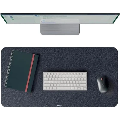 LARGE MOUSE MAT (70x36cm): This large desk mat provides ample space for your keyboard, mouse, notepad, and office desk accessories. Perfect for helping you maintain a tidy and organised workspace SOFT & COMFORTABLE, SUITABLE FOR GIFTING: This desk protector is crafted from polyester felt material, offering a warm, inviting texture with a smooth writing and working surface. A practical and stylish choice that's also suitable for gifts NON-SLIP, DURABLE & ROLLABLE: The rubber backing ensures stability, preventing unwanted movement while keeping items secure on the non-slip desk mat. The desk pad is rollable, for easy portability and storage, making it convenient for hot desking or transport. MULTIFUNCTIONAL & STYLISH: This elegant felt desk mat adds a natural look and feel to any workspace while protecting your desk from daily wear and tear. Suitable for office desks, home workstations, and study tables ECO-FRIENDLY & SUSTAINABLE: The desk pad is made from 75% recycled materials, including 100% post-consumer recycled polyester felt and a 70% pre-consumer recycled non-slip rubber backing CONTENTS: Includes x 1 Leitz Large Felt Desk Mat, perfectly sized to fit any standard desk and the Leitz Ergo Compact Workstation, 53830089