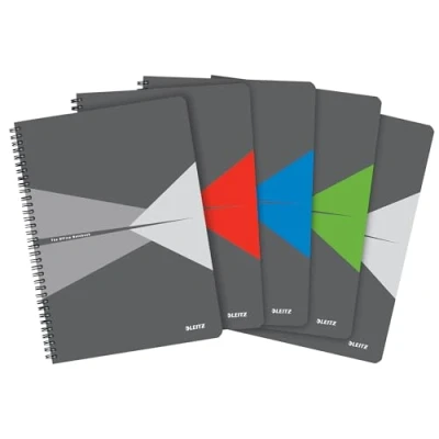 High-Quality College Notepad: Spiral-bound notepad with 180 pages / 90 sheets A4, FSC-certified paper 80 g/m², micro-perforated, with tear-off perforation, ideal for the office, home, school, and students Practical Design: Premium quality paper with a special coating for a pleasant writing surface, framed ruling with title and date line at the top for clarity Extensive Features: A lightweight yet durable cover and a double spiral binding with 360 degrees opening, providing enhanced adaptability and ease of use in mobile settings than hardcover notebooks Always With You: An everyday essential for daily notes, sketches, drawings, ideas, thoughts, and projects that match other products from the Leitz range Contents: 5 x Leitz Office college pad A4, squared, with PP cover, 180 pages/90 sheets (80 g/m²), dimensions (WxHxD): 22.5 x 1.3 x 29.7 cm, 0.5 kg, 2x gray, 1x red, 1x blue, 1x green, 44951099