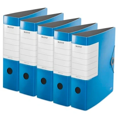 Leitz Quality Folder 180 Solid, Pack of 5, A4, Light Blue, 8.2 cm Spine Width, Elastic Closure, Robust Polyfoam, Extra Wide, Interchangeable Label, 11120030