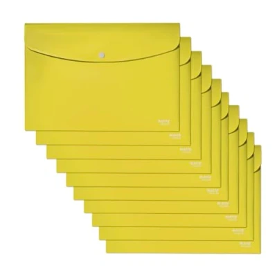 60 A4 sheet capacity (80 gsm) Box contents: 10 x Leitz Recycle folder A4, dimensions (W x H x D): 235 x 7 x 313 mm, 50 g, yellow, 46780015 Ideal for carrying or protecting documents up to A4 size, small notes, pictures and other accessories Made from 80 Percent recycled utility plastic: the folder is carbon neutral and awarded the Blue Angel, plus it is 100 Percent recyclable Best protection for important documents: the opaque material protects sensitive data, a security flap with user-friendly press stud closure prevents documents from falling out Lightweight and durable: the folder is ideal for transporting and storing documents – whether in the office, at school or on the go Flap with push button closure prevents documents from falling out