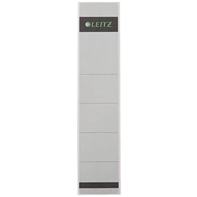 Self adhesive hand writable spine labels for 50 mm standard hardboard lever arch files, narrow and short, grey paper label Large writing space, four writing guide lines for a professional finish Clearly identify contents with any pen, update the label when contents of the file change Easy to position on the lever arch file spine, 39 x 192 mm (W x H) suitable for Leitz standard 50 mm lever arch files Contents: 10 x labels, self adhesive paper spine labels, short and narrow, 16430085, 39 x 192 mm (W x H), colour: grey, for Leitz standard lever arch files: 1050, 1060