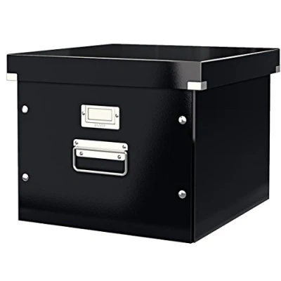 Suspension file box, holds approximately 15 x A4 suspension files with documents (does not hold foolscap suspension files), contemporary design, portable with metal handles, ideal for the transportation and organisation of documents at home or in the office Simple assembly and disassembly with clothes popper fastening construction, folds away for easy storage when not in use Durable material for reusable storage, sturdy metal handle, file runners and label on front Mix and match with other products from the Leitz click and store range, high quality, reinforced metal corners for keeping documents safe, laminated surface for easy cleaning Contents: 1 x Leitz Click and Store Suspension File Box, Black, 60464095; (W x D x H) 35.7 x 28.5 x 36.7 cm, A4
