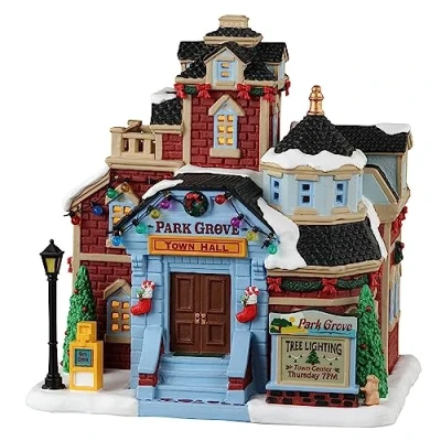 Lemax 35045 Caddington Village Lighted Building: Park Grove Town Hall Battery Operated / 4.5V Adaptor Compatible, Manufacturer: Lemax
