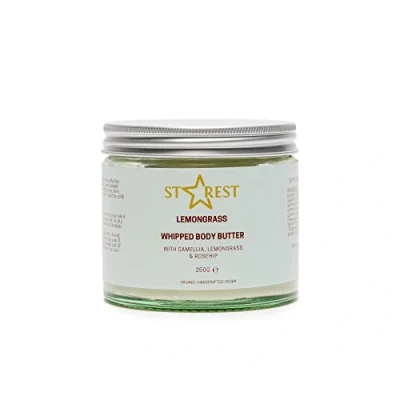 Lemongrass Whipped Body Butter Soothing Organic Moisturiser, 24h Hydrating Vegan Shea