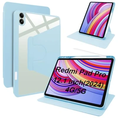 [Compatibility] Specially designed for Xiaomi Redmi Pad Pro & POCO Pad 12",not suitable for other devices. [Precise Hole Opening] Precise openings are designed to allow full access to all controls and functions (camera, speakers, etc.), making it easy to use all of the tablet's features without disassembly. [Rotating Stand] The tablet case can be rotated 360° to provide multi-angle standing as required to meet the needs of various angles of viewing. [Slot with pen] The case comes with a slot for your capacitive pen, so you can protect your pen from being lost and use it as you wish. [Material] The case is made of high quality imitation leather PU+ elastic silicone+ transparent acrylic material, which retains the original beauty of the tablet, and at the same time is both scratch-resistant and drop-proof.