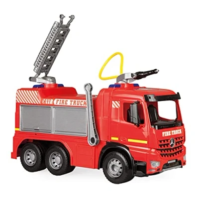 Strong giant toy vehicle from Lena, fire brigade Mercedes Benz Arocs with a length of approx. 66 cm, made of high quality and durable plastic, 3 axles ensure an incredibly high load capacity With 1.5 litre water tank and 360 degree swivel water pump, which can spray up to 8 metres and allows great extinguishing inserts, as well as stickers "fire brigade" in several languages The water gun of the Giga Truck's ambulance is operated by the side lever, a great water fun for small and large firefighters from 3 years for indoor and outdoor use The tread hard tyres are ideal for the garden, on the beach and sandpit. Made in the EU. TÜV ID 38607 certified. Entdecken Sie auch die anderen Lena "Starke Riesen" Lena XXL fire truck, load capacity: 50 kg, function: 1.5 litre water tank, 360° water spray up to 8 metres, dimensions: approx. 66 x 30 x 38 cm, weight: 3.4 kg, item no. : 02158, EAN: 4006942848393, Manufacturer: SiMM Spielwaren GmbH