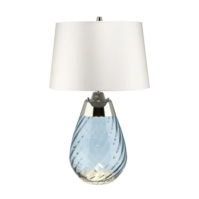 Lena 2 Light Small Blue Table Lamp with Off White Shade, tinted Glass , E27
